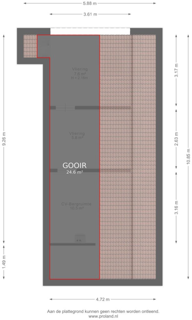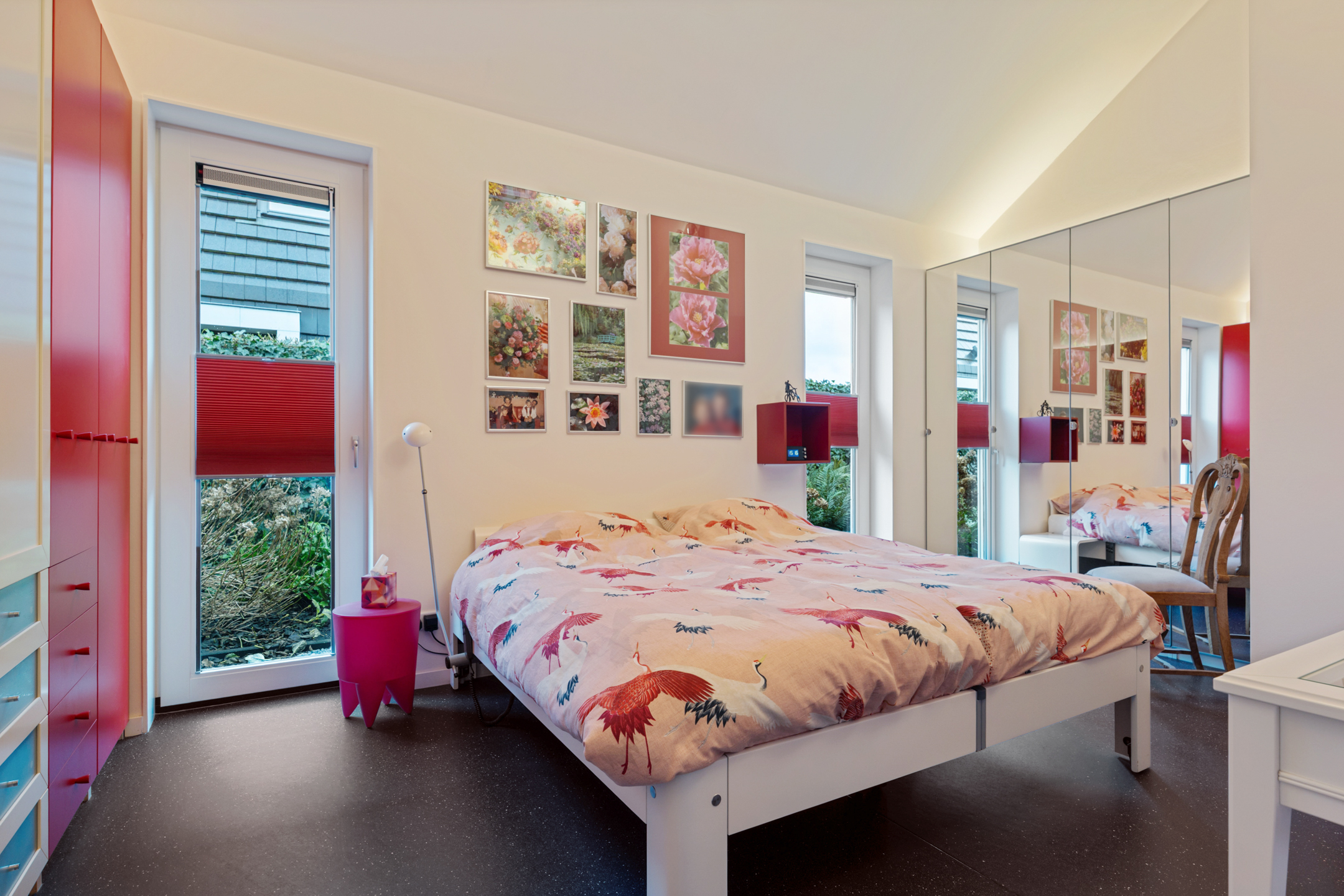 - een royale tweede slaapkamer van ca. 16,6 m² aan de linkerzijde van de woning;