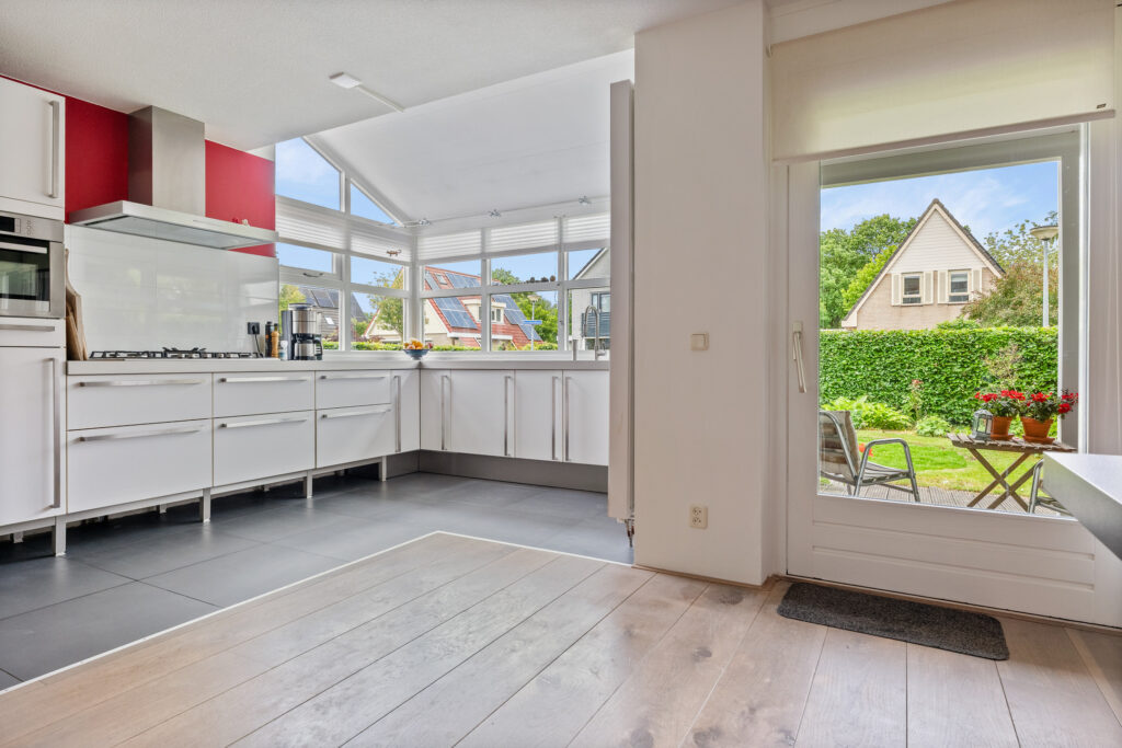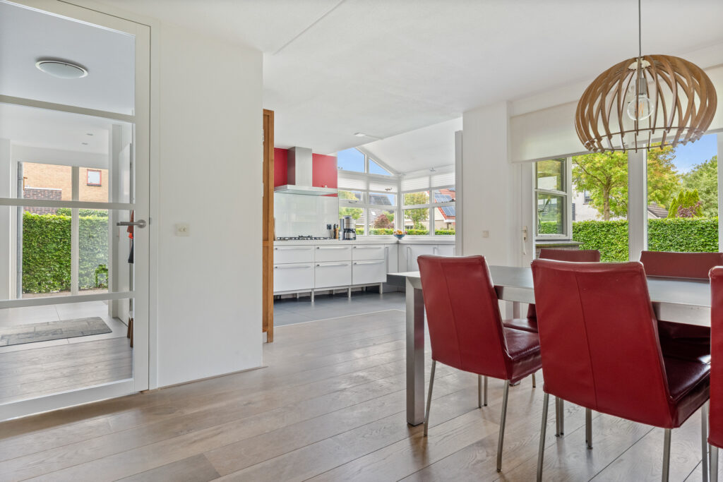 In de woning valt de lichtinval direct op. De lichte en open leefruimte, die dankzij grote raampartijen en openslaande deuren naadloos overgaat in de tuin. De keuken en woonkamer zijn beide tuingericht, waardoor de gehele leefruimte baadt in het licht en verbonden is met buiten. In de voortuin een veranda op het oosten, waar je in de ochtend in de zon kunt genieten van een kopje koffie. In de achtertuin de middag en avond Hier ervaar je elke dag rust en ruimte.