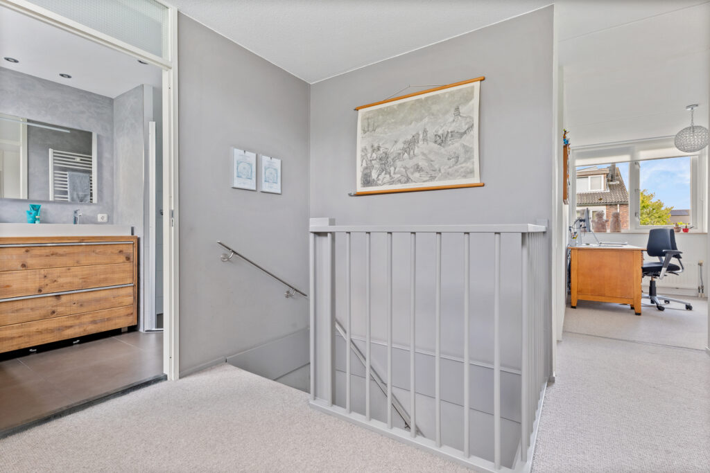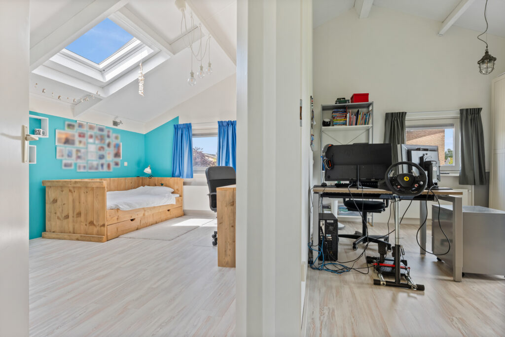 Op de verdiepingen bevinden zich vijf goed bemeten slaapkamers en een complete badkamer met zowel een ligbad als een inloopdouche. De woning beschikt bovendien over een grote, binnendoor bereikbare garage — ideaal voor hobby’s, extra opslag of het stallen van fietsen en/of een auto.