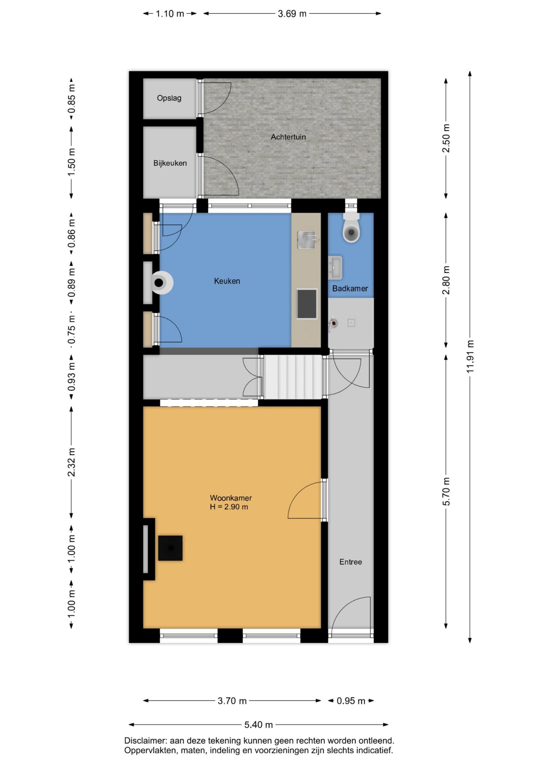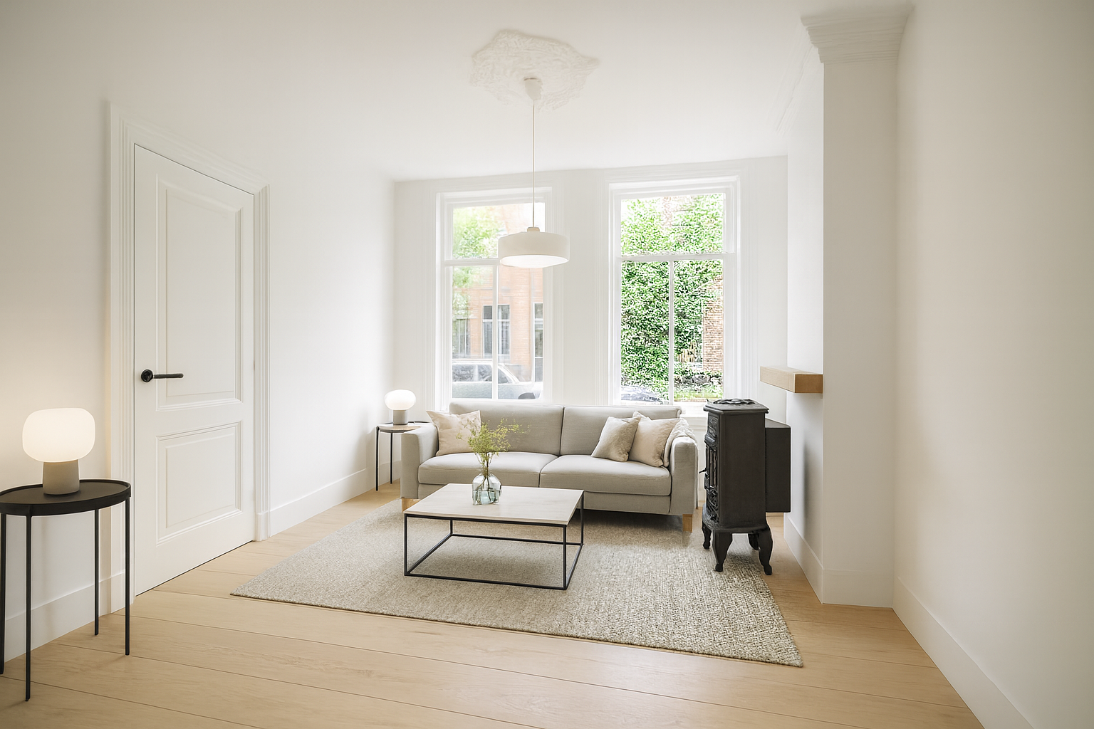 Met een woonoppervlakte van 65 m² verdeeld over twee woonlagen heb je hier een fijne basis. De begane grond beschikt over een lichte woonkamer met een royale plafondhoogte van 2,90 meter, een keuken met bijkeuken en een badkamer.