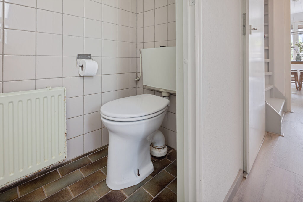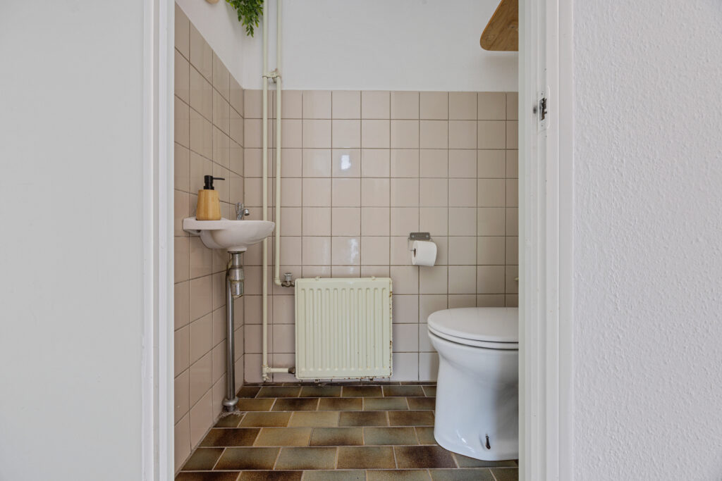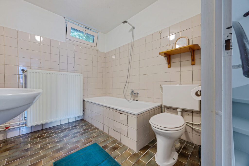 Op de eerste verdieping bevinden zich drie volwaardige slaapkamers, elk met een prettige lichtinval en praktische indeling. De badkamer is verouderd maar voorzien van een ligbad met douche, een tweede toilet, een wastafel en een aansluiting voor de wasmachine.