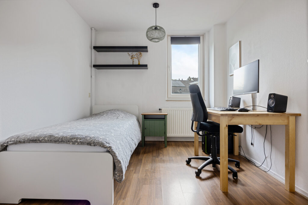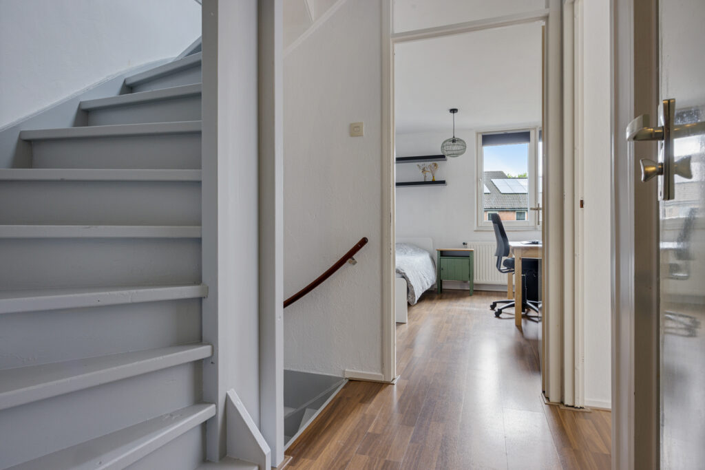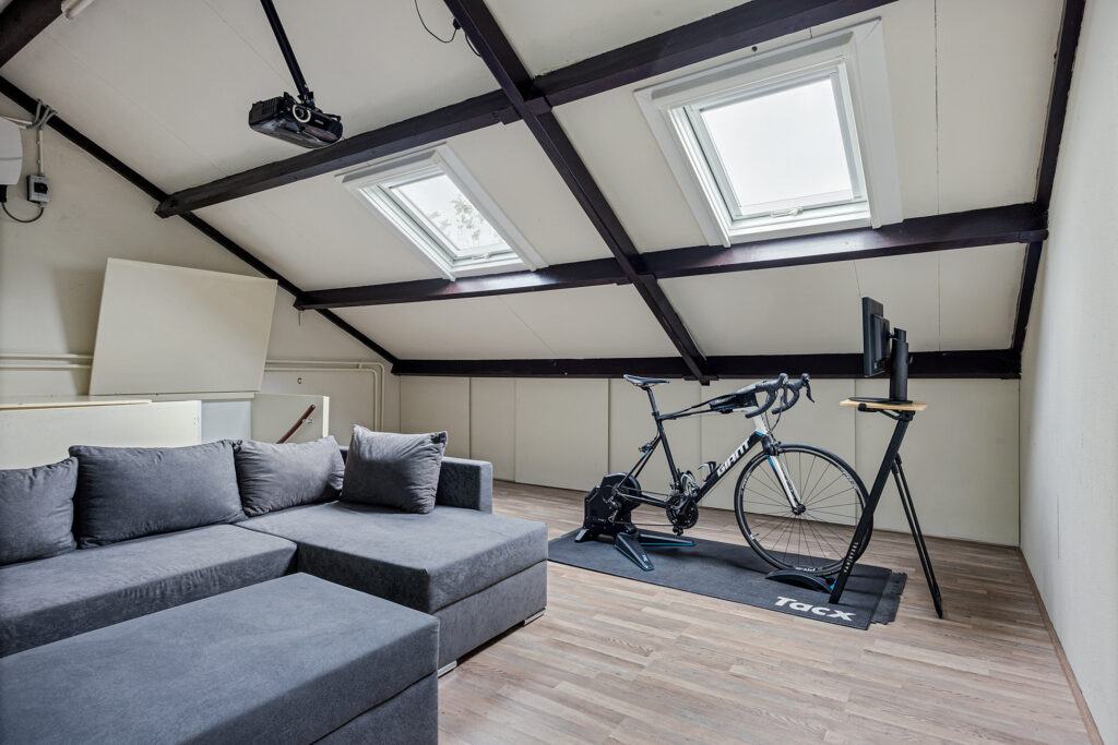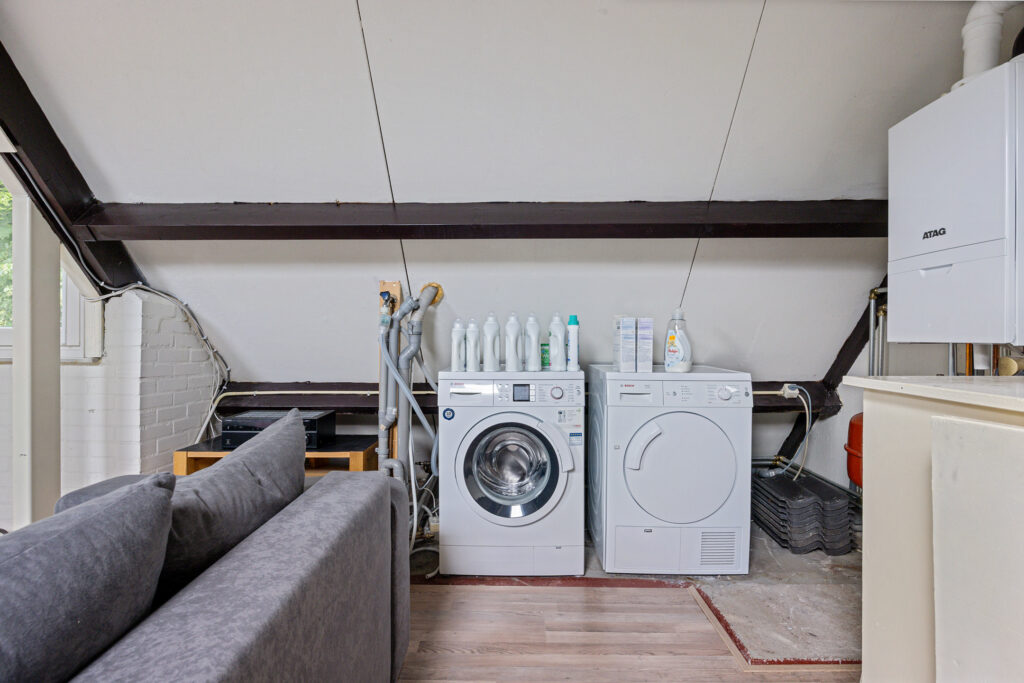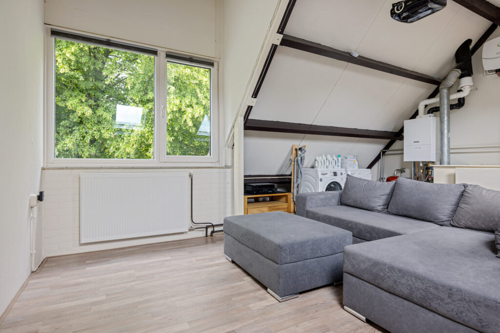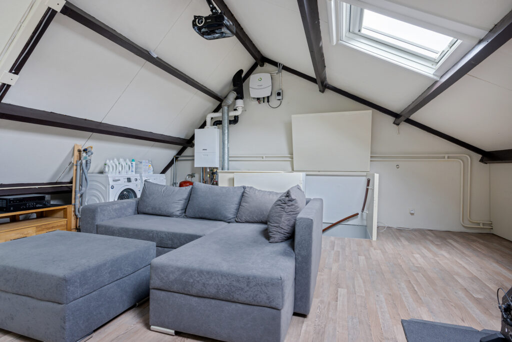 De tweede verdieping biedt een ruime zolder met volop daglicht dankzij een dakkapel en twee dakramen, waardoor deze ruimte multifunctioneel inzetbaar is. Hier vind je eveneens de aansluitingen voor een wasmachine en droger, evenals de opstelling van de cv-installatie.