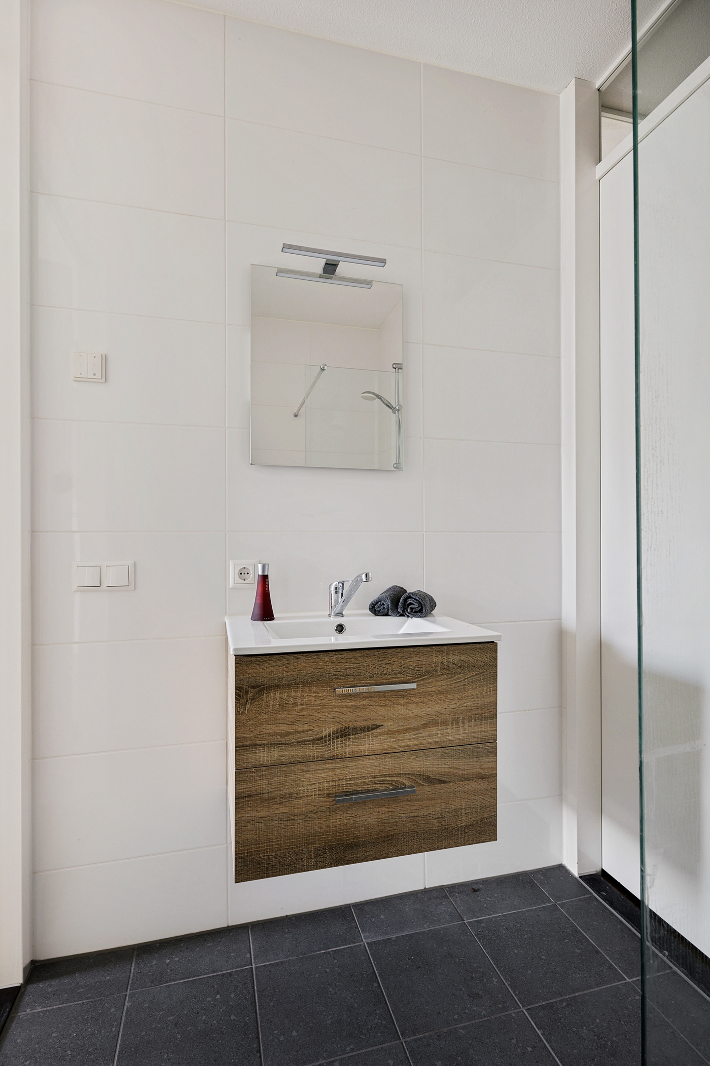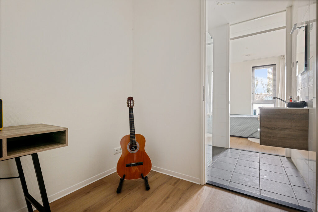 Daarnaast is er een ruime slaapkamer, een kantoor/berging en een moderne badkamer met inloopdouche, wastafel en toilet. Het appartement beschikt verder over een interne berging. De meterkast bevindt zich op de hal.