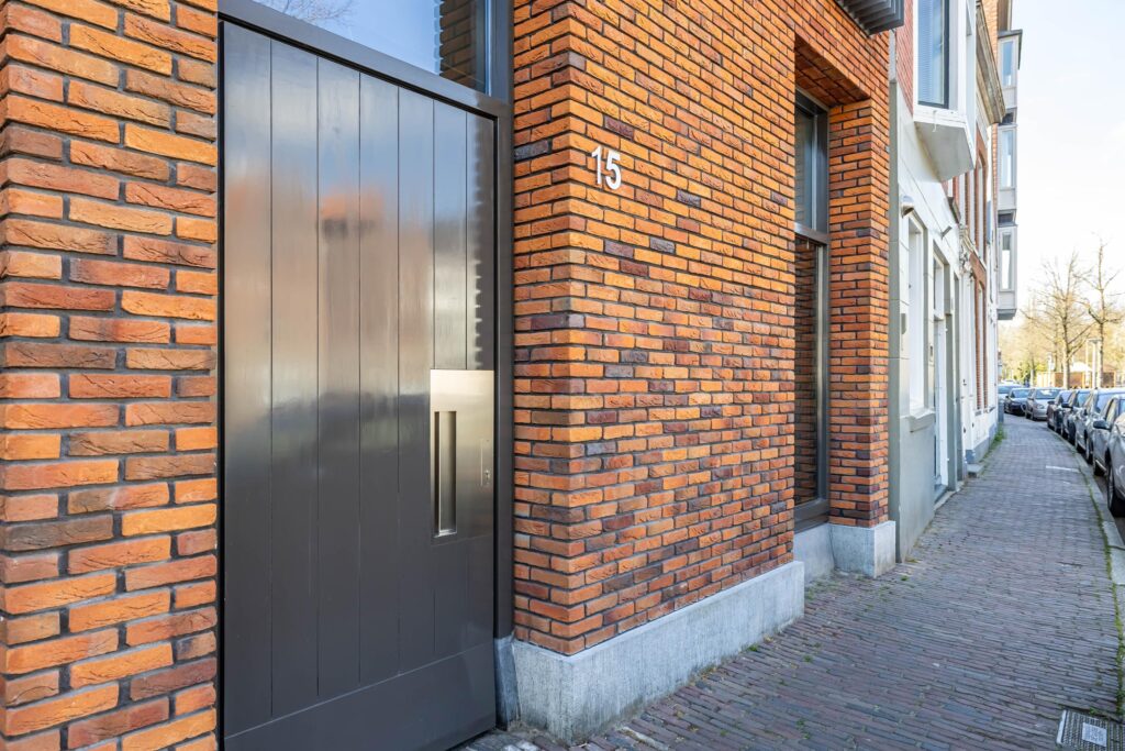Dit onder architectuur van De Zwarte Hond in 2007 gebouwde woonhuis is een zeldzaam juweel. Geïnspireerd op de historische pakhuizen langs de A, maar met een eigentijdse twist, heeft architect Jurjen van der Meer een ontwerp afgeleverd waarin ruimte, licht en verfijnde details centraal staan. De gevel, opgetrokken uit speciaal voor dit pand gebakken handvormstenen van Steenfabriek Vogelensangh, verraadt de zorg en liefde waarmee dit huis is gecreëerd.