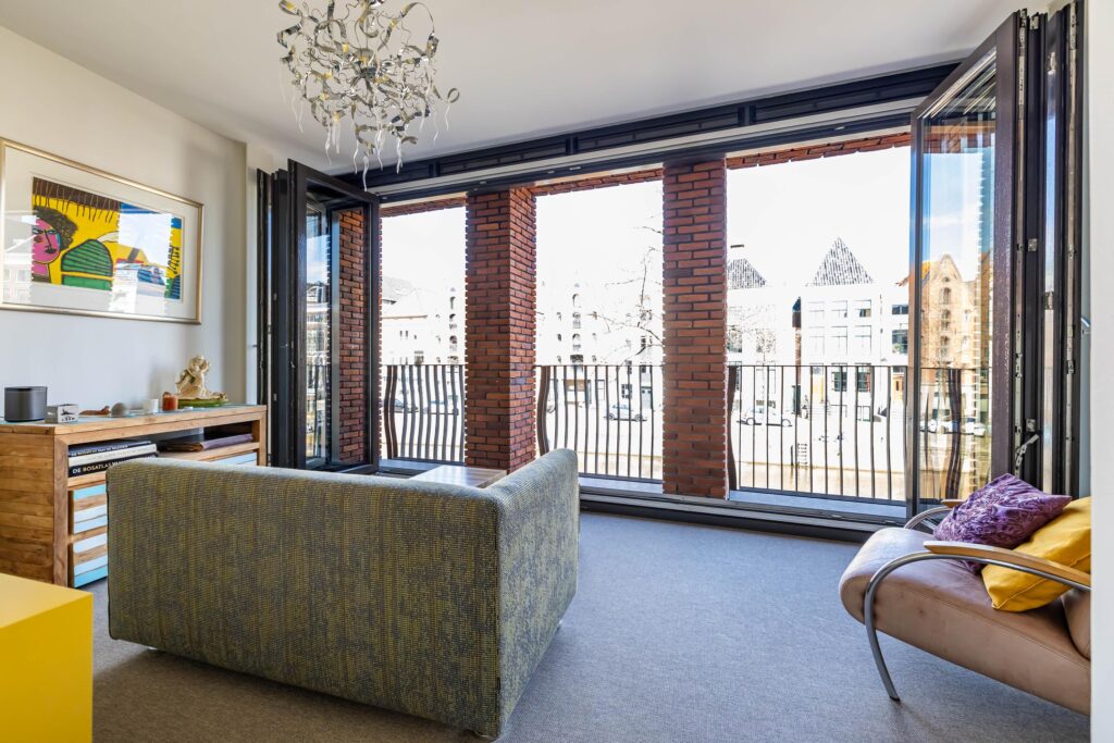 Ondanks de ligging midden in het bruisende centrum, ervaart u hier een serene rust. De A, ooit het domein van handelsschepen, maakt nu deel uit van de staande mastroute. In de zomer glijden pleziervaartuigen en roeiboten voorbij — alsof het stadsleven zich op gepaste afstand in slow motion afspeelt.