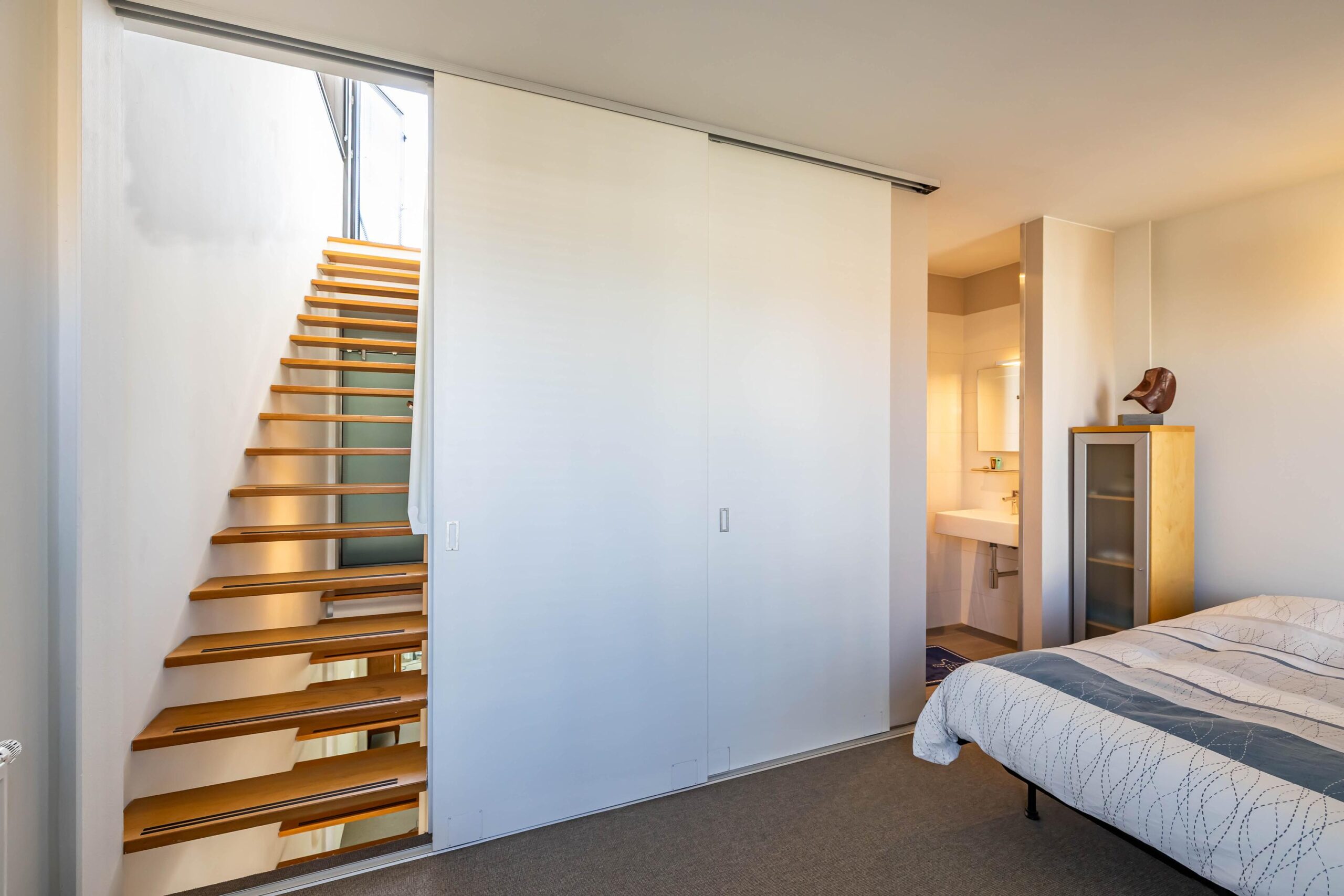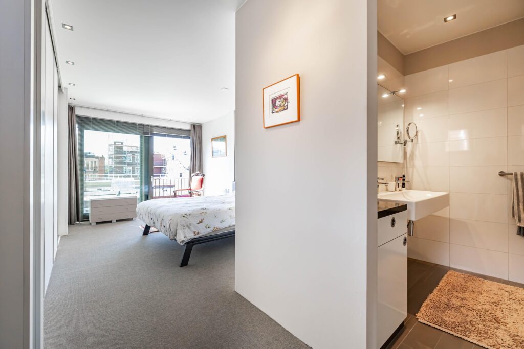 De charme van dit huis zit niet alleen in zijn esthetiek, maar ook in het comfort. Denk aan vloerverwarming op de begane grond en in de badkamer, extra hoge binnendeuren met onzichtbare scharnieren, een inloopdouche met de allure van een luxe suite, en een separaat toilet op elke woonlaag en een gastenverblijf met eigen badkamer. Een extra slaapkamer of werkruimte nodig? Dat kan middels een opbouw. Over elk detail is nagedacht, en uitsluitend hoogwaardige materialen zijn toegepast.