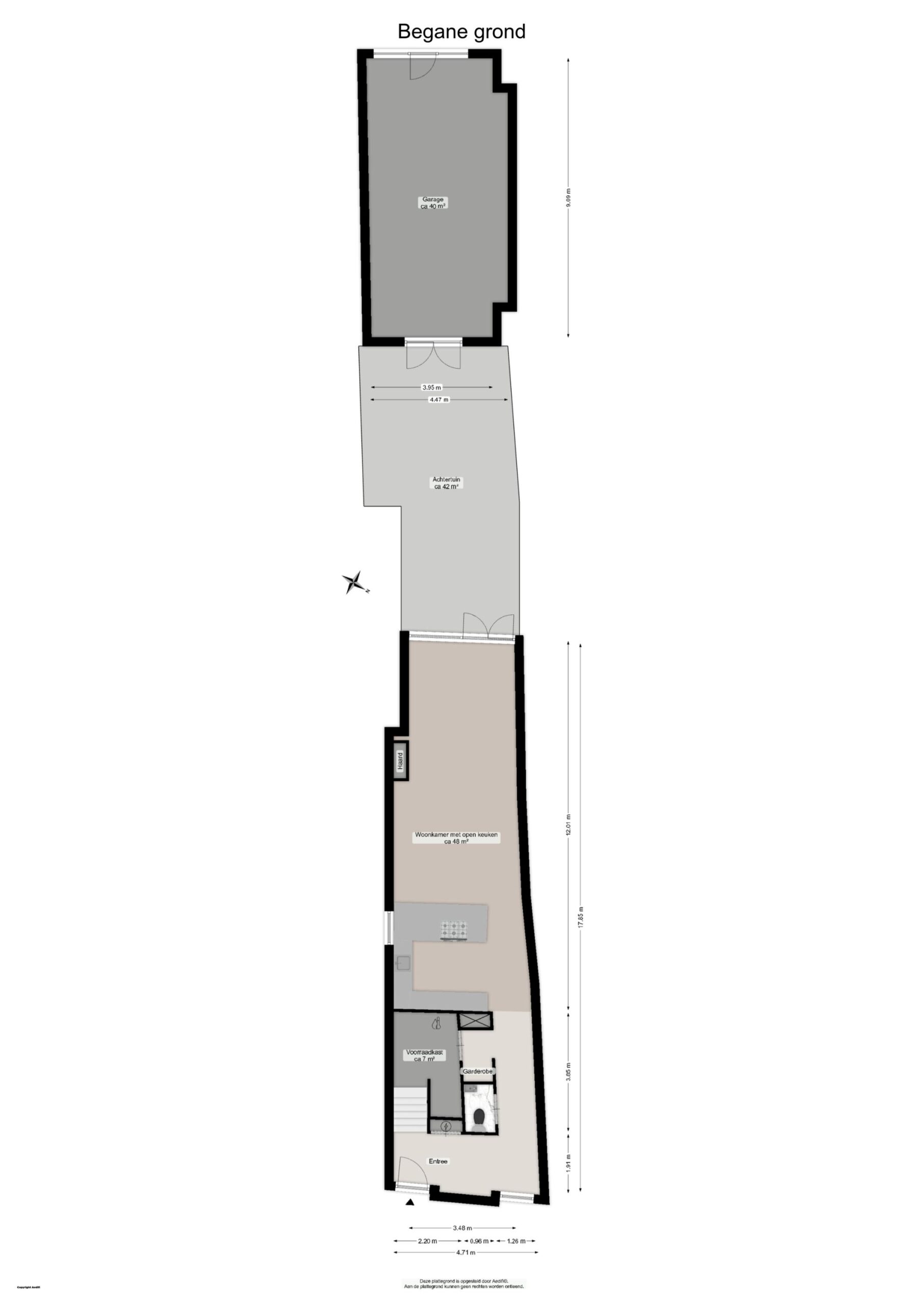 - De totale perceeloppervlakte bedraagt ca. 190 m² (inc. aandeel gang, tuin en garage)
