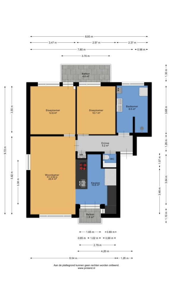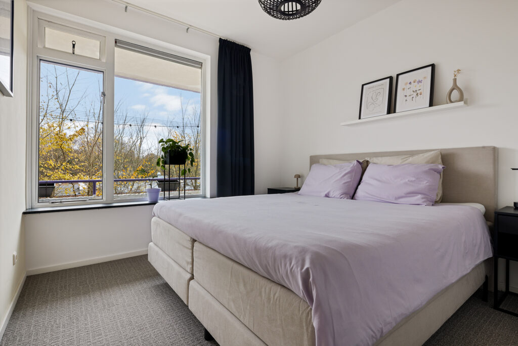Het appartement beschikt over twee goed bemeten slaapkamers, beide geschikt als volwaardige slaap-, werk- of logeerkamer. De badkamer is ruim en modern uitgevoerd en voorzien van een inloopdouche, wastafelmeubel en een aansluiting voor de wasmachine. Aan zowel de voor- als achterzijde van het appartement is een balkon aanwezig, waar je heerlijk buiten kunt zitten en kunt genieten van zowel de ochtend- als de middagzon.