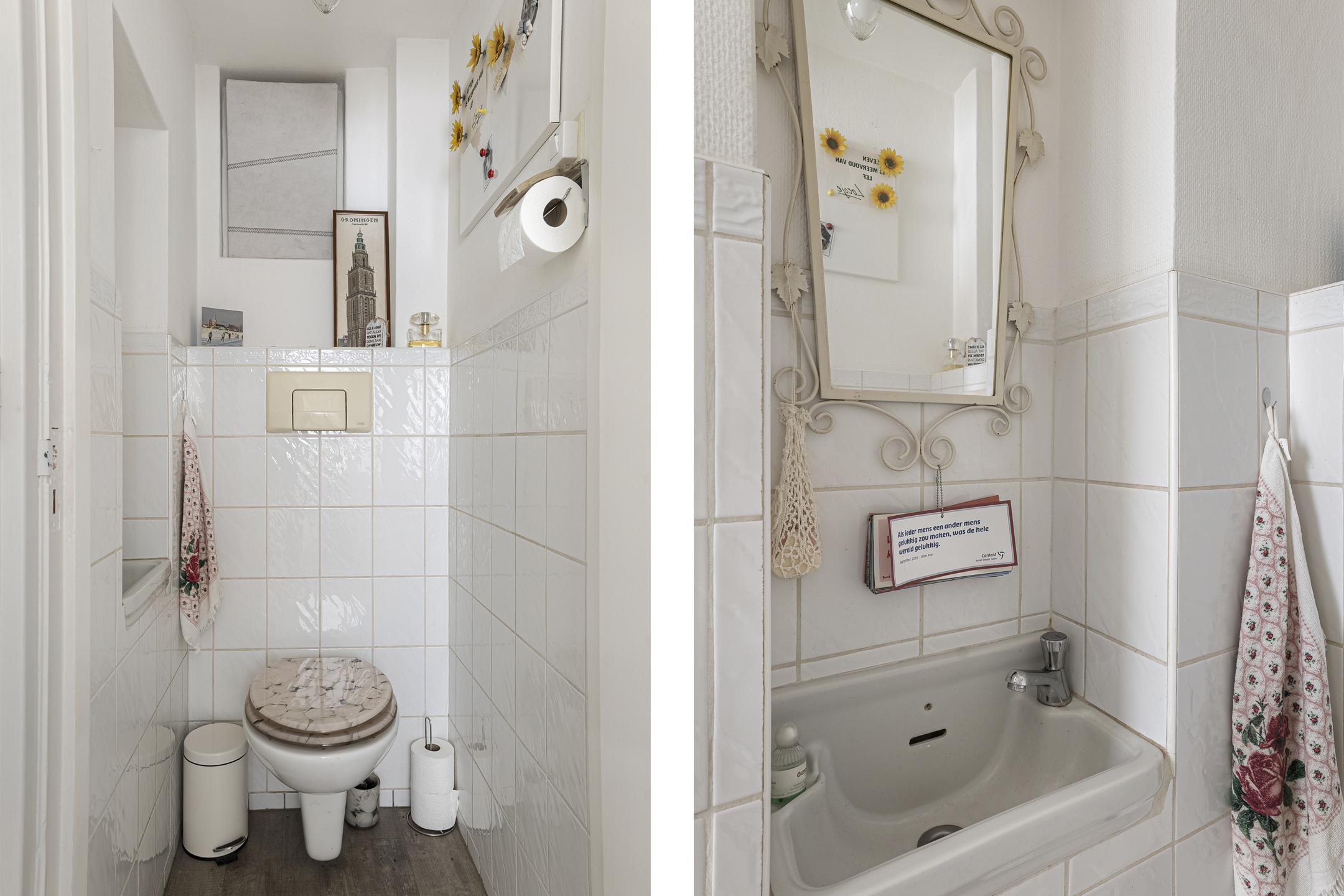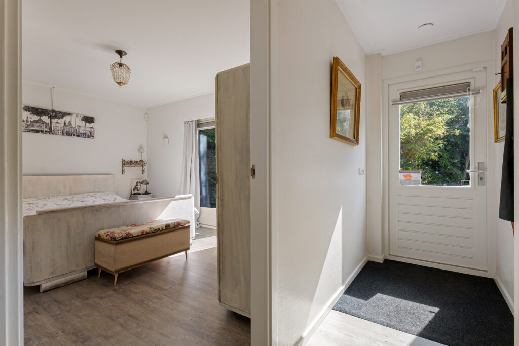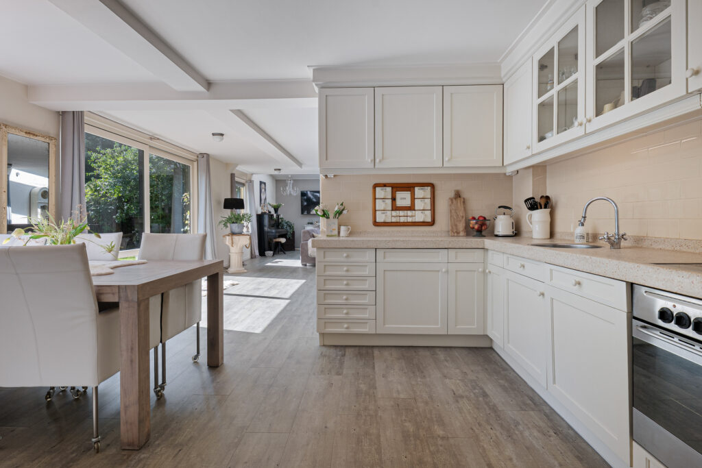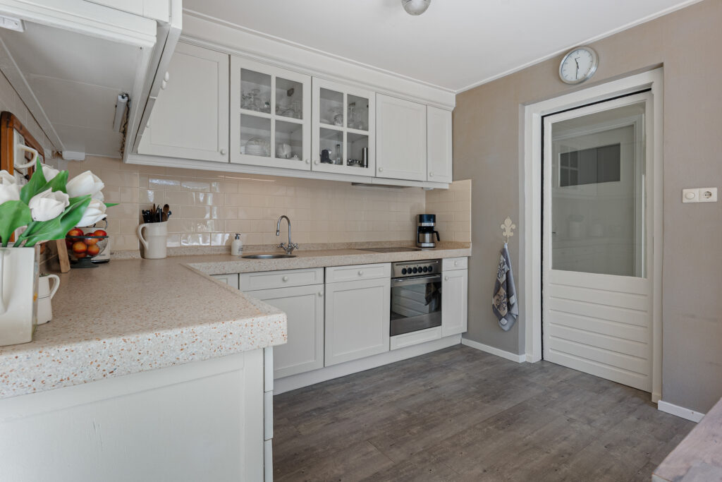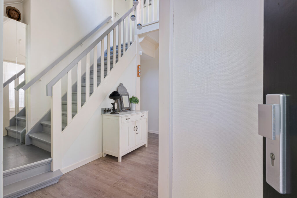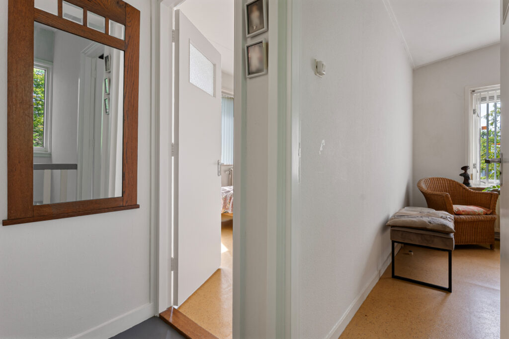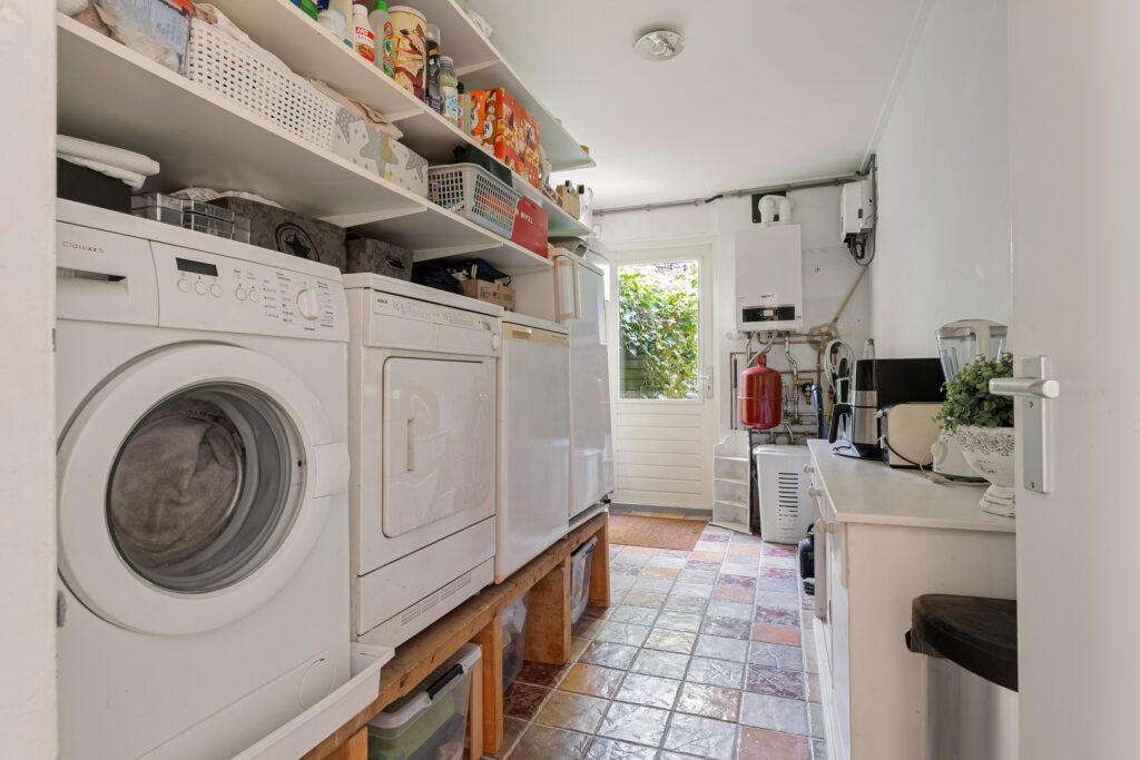 Naast levensloopbestendig is de indeling van de woning speels en toch praktisch te noemen. Zo leidt de entree in de eerste plaats naar de royale woonkamer met zowel ramen in de gevels als speelse dakvensters. De aansluitende woonkeuken beschikt over een keurige inrichting met inbouwapparatuur. Een gang biedt toegang tot de slaapkamer met heerlijke tuindeuren, maar ook naar de royale en moderne badkamer met toilet. Het geheel wordt op de begane grond gecompleteerd door een ruime bijkeuken. In de hal bevindt zich een betegeld toilet, een kelder en de trapopgang naar de eerste verdieping. Hier bevinden zich naast een berging nog eens drie slaapkamers en een tweede badkamer. Twee van de drie slaapkamers hebben toegang tot het dakterras.