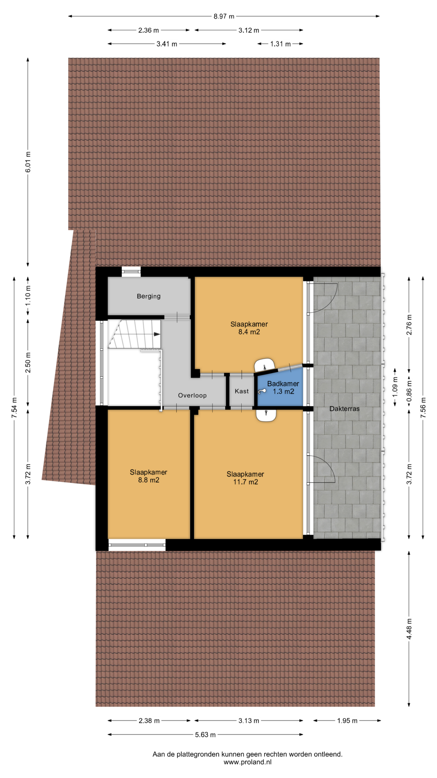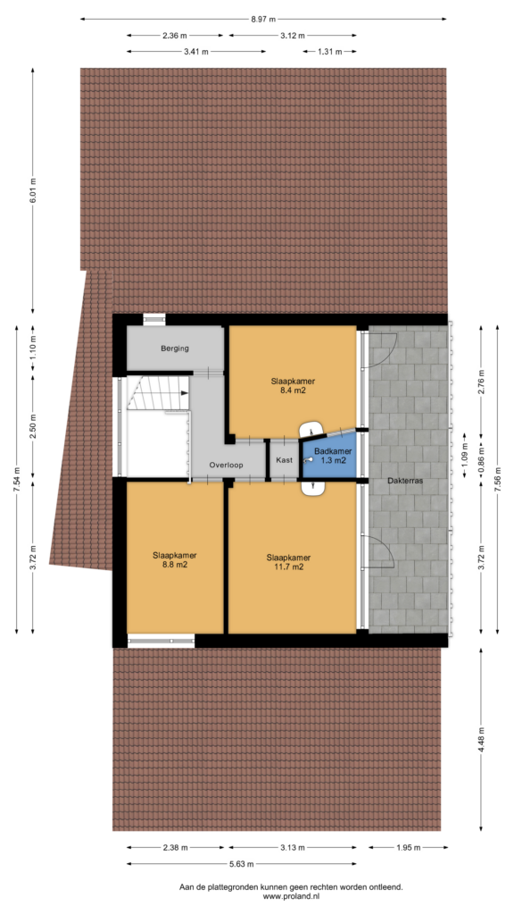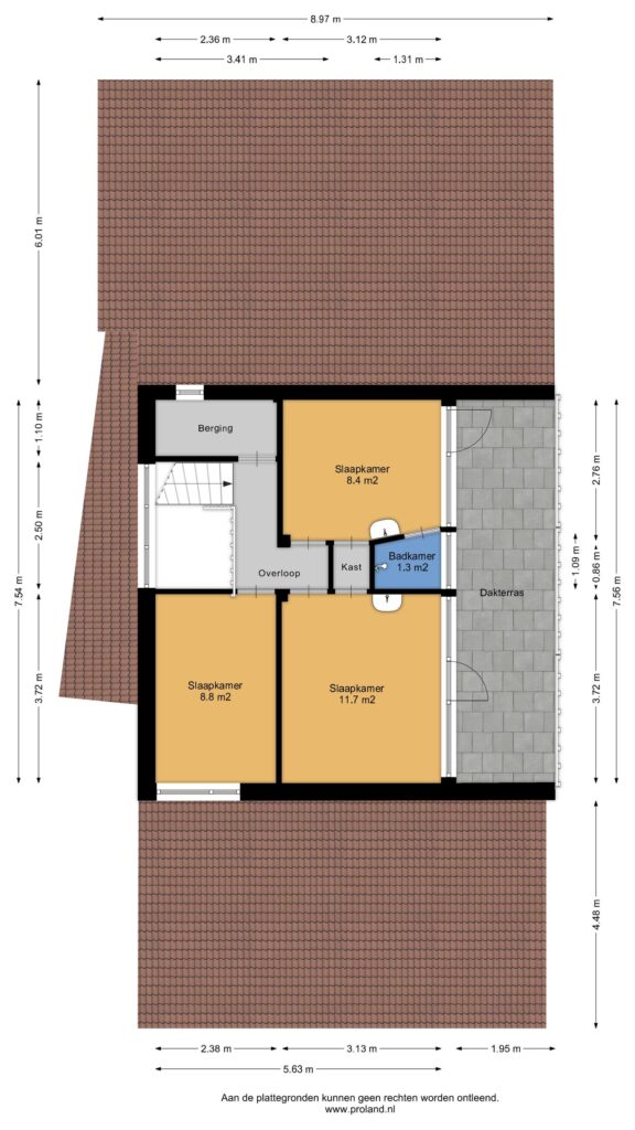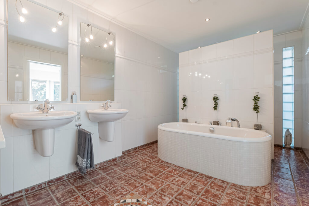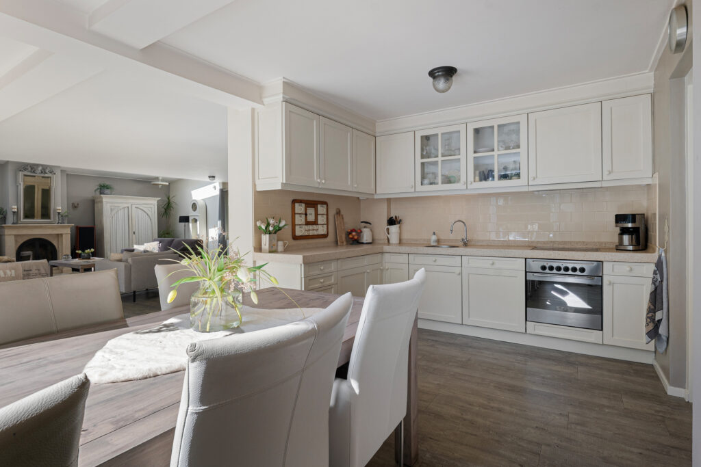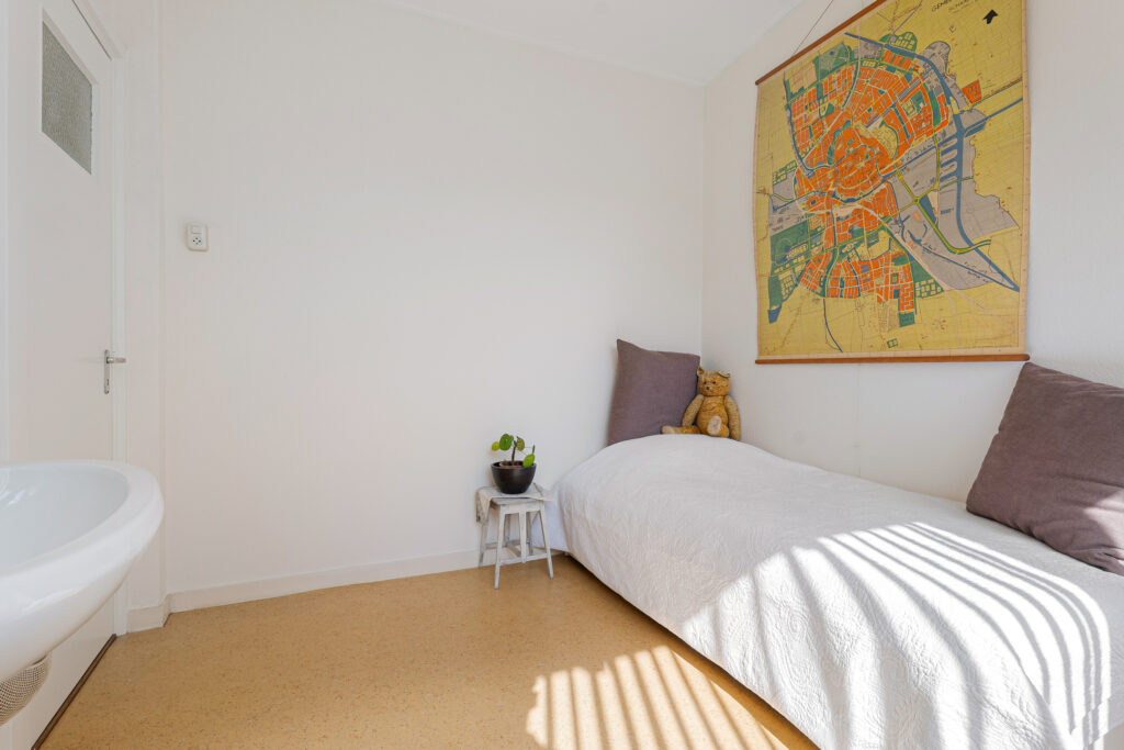 Naast levensloopbestendig is de indeling van de woning speels en toch praktisch te noemen. Zo leidt de entree in de eerste plaats naar de royale woonkamer met zowel ramen in de gevels als speelse dakvensters. De aansluitende woonkeuken beschikt over een keurige inrichting met inbouwapparatuur. Een gang biedt toegang tot de slaapkamer met heerlijke tuindeuren, maar ook naar de royale en moderne badkamer met toilet. Het geheel wordt op de begane grond gecompleteerd door een ruime bijkeuken. In de hal bevindt zich een betegeld toilet, een kelder en de trapopgang naar de eerste verdieping. Hier bevinden zich naast een berging nog eens drie slaapkamers en een tweede badkamer. Twee van de drie slaapkamers hebben toegang tot het dakterras.