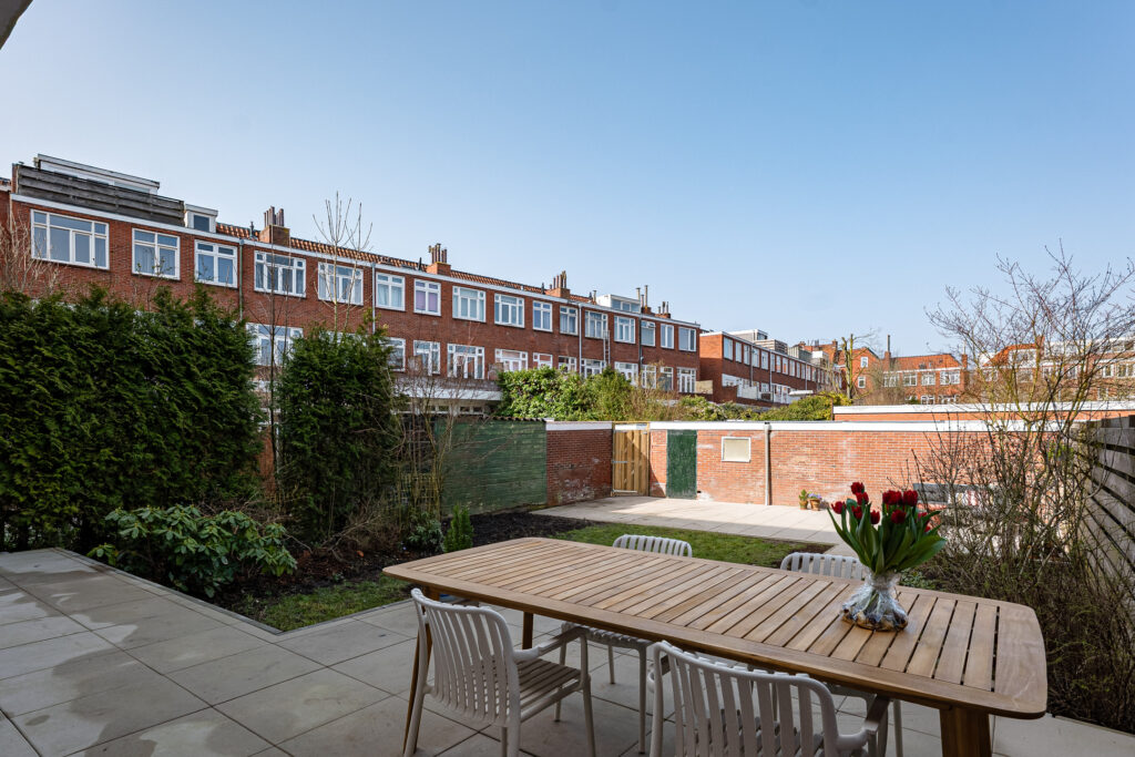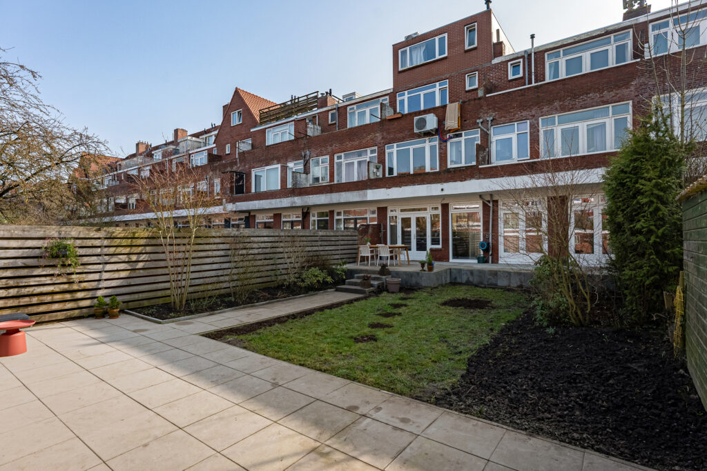 De achtertuin is een absoluut pluspunt van deze woning. Met een oppervlakte van circa 138 m² en een ligging op het noordwesten is er altijd een fijne plek in de zon of schaduw te vinden. De tuin is verzorgd aangelegd en voorzien van beplanting en bestrating. Achterin de tuin bevindt zich bovendien een praktische berging, ideaal voor het stallen van fietsen en het opbergen van spullen.