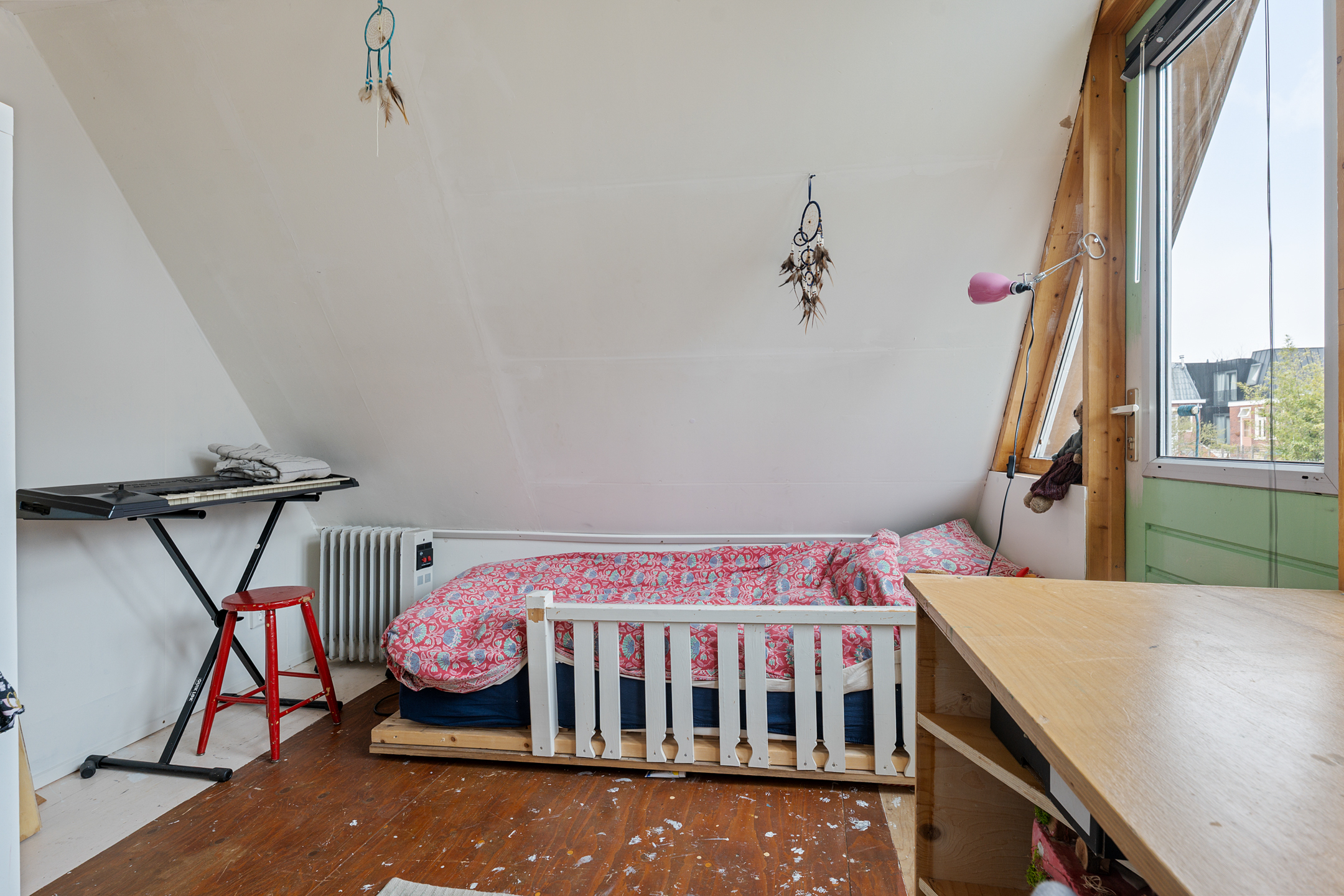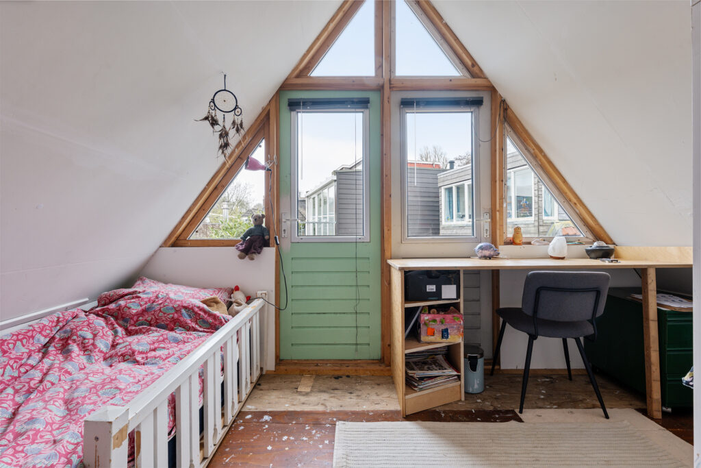 Aan de voorzijde van de woning bevindt zich de eerste slaapkamer. Aan de achterzijde ligt de tweede slaapkamer, die in 2022 is vergroot door het verlengen van het dak. Hierdoor is hier merkbaar extra ruimte ontstaan en voelt deze kamer comfortabeler aan.