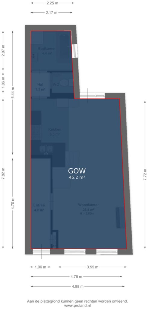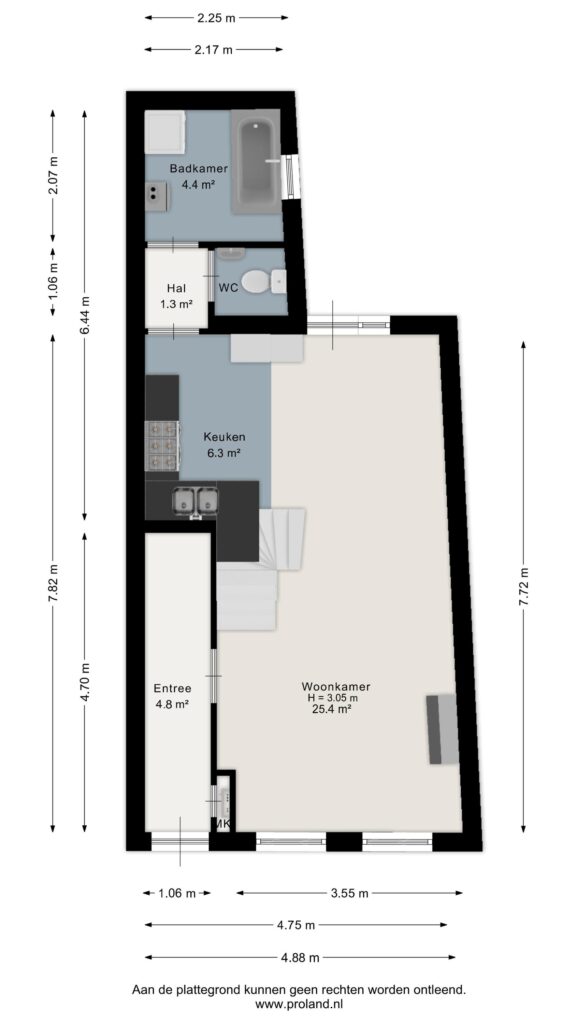 Via de entree aan de voorzijde komt u binnen in de hal met meterkast. Vanuit hier heeft u toegang tot de woonkamer.