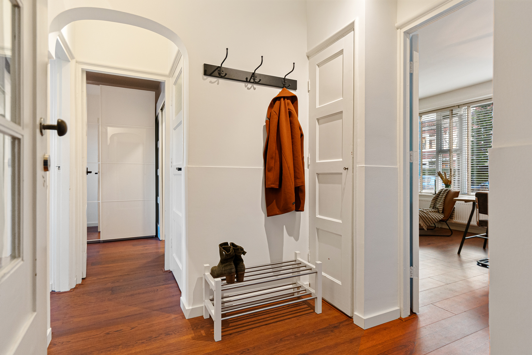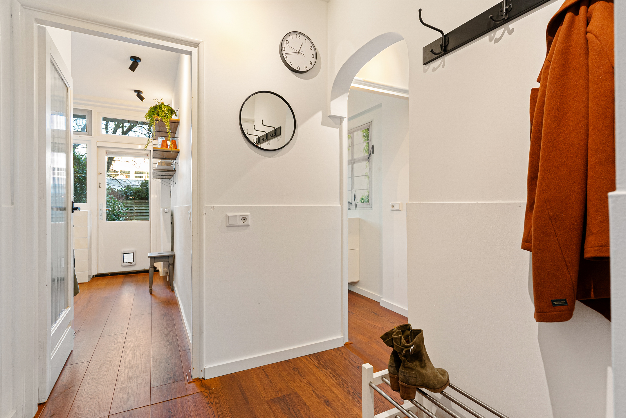 Via de entree kom je in de hal, die toegang biedt tot vrijwel alle vertrekken. Aan de voorzijde van de woning bevindt zich de lichte woonkamer van ca. 18 m² met grote raampartijen die zorgen voor een prettige lichtinval. De keuken bevindt zich aan de achterzijde en heeft direct contact met de achtertuin. Vanuit de keuken stap je zo de overkapping en de bijzonder diepe achtertuin in.