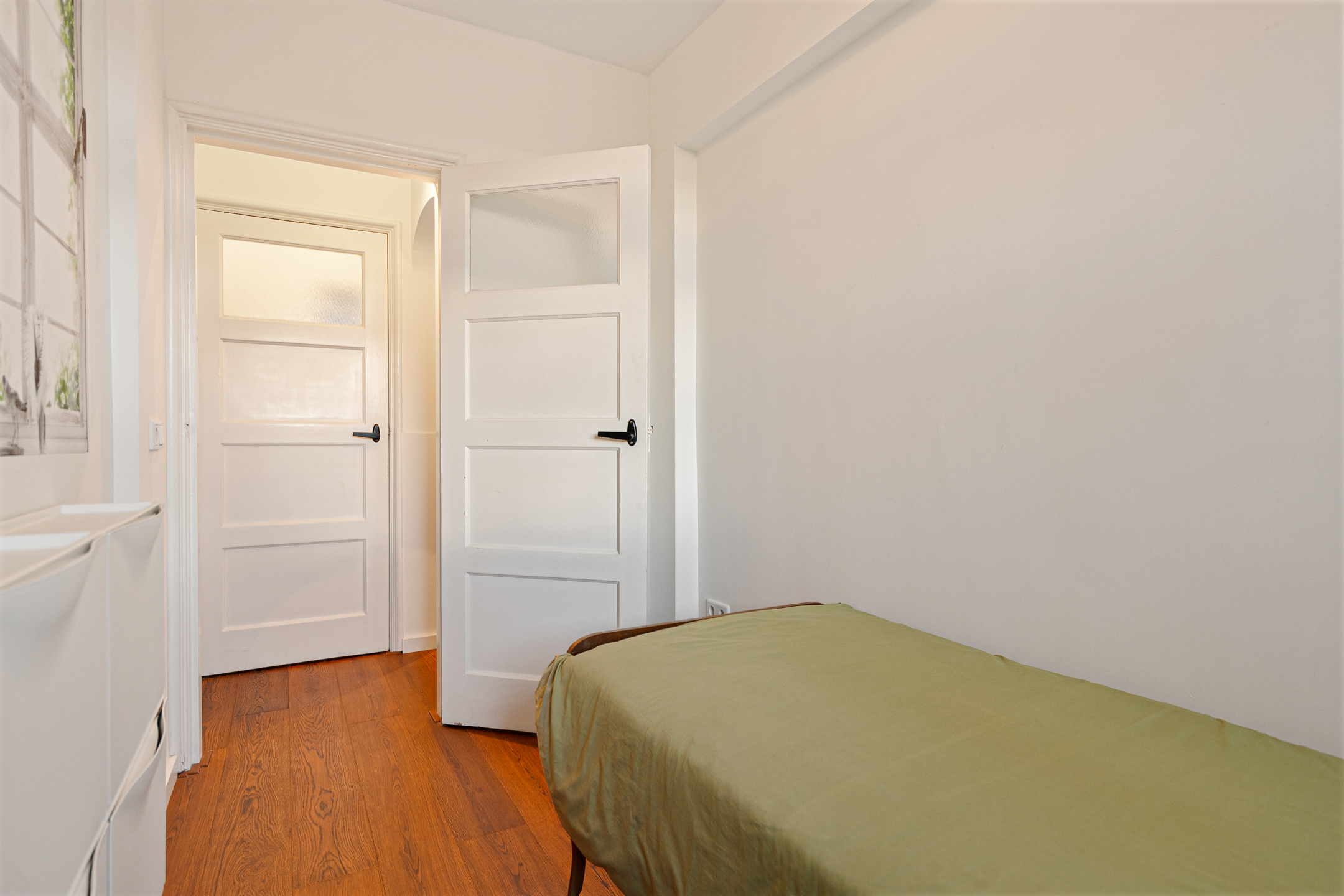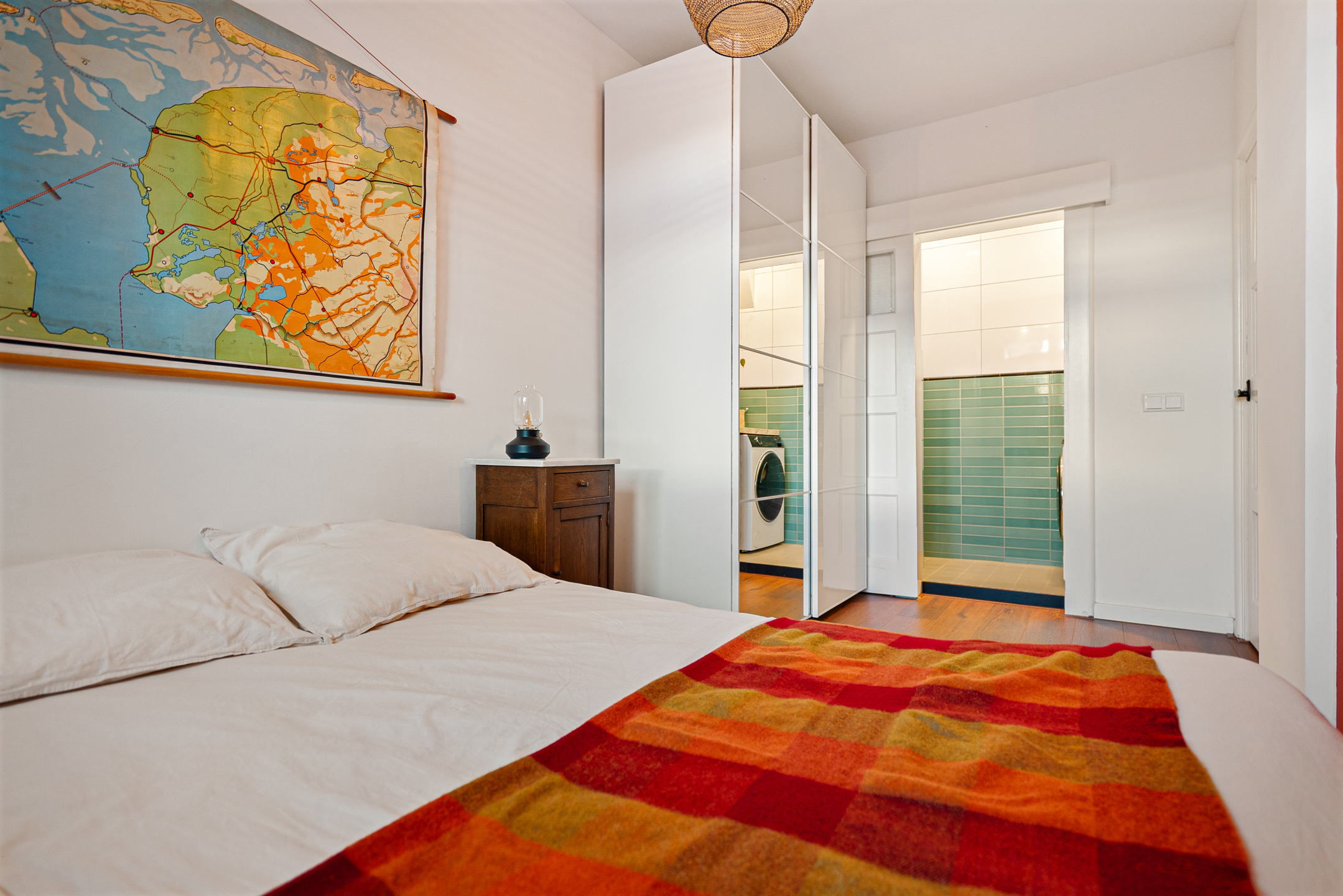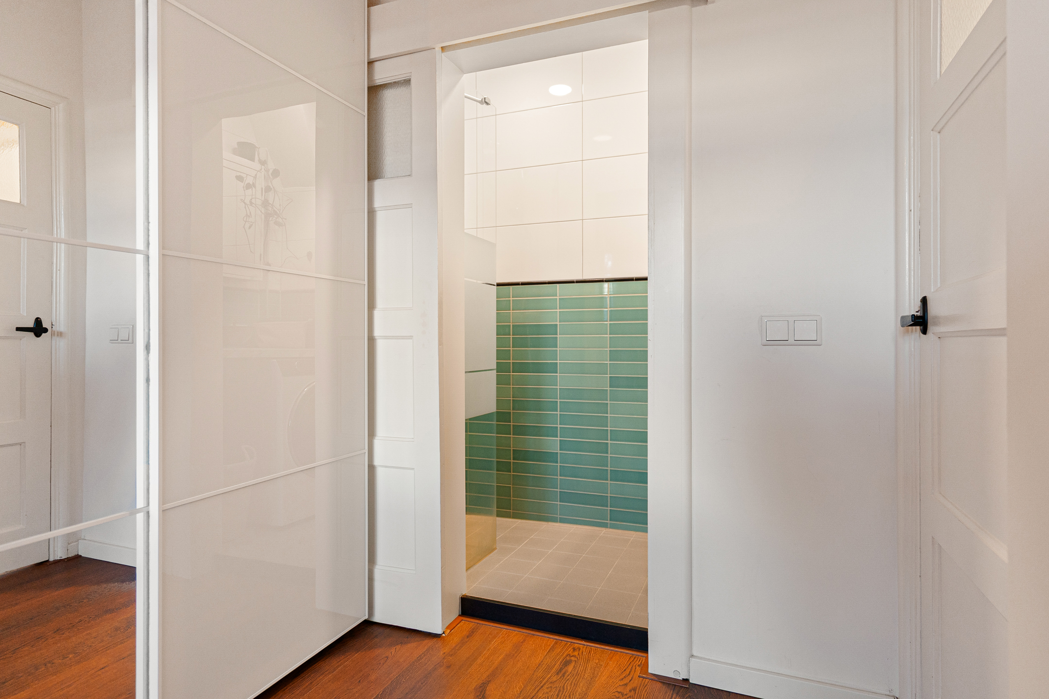 De woning beschikt over twee slaapkamers, beide gelegen aan de tuinzijde. De badkamer is voorzien van een wastafel, inloopdouche en wasmachineaansluiting; het toilet is separaat. Verder is er een praktische kast in de hal aanwezig en beschikt de woning over extra bergruimte op de gezamenlijke zolder (afgesloten eigen berging).