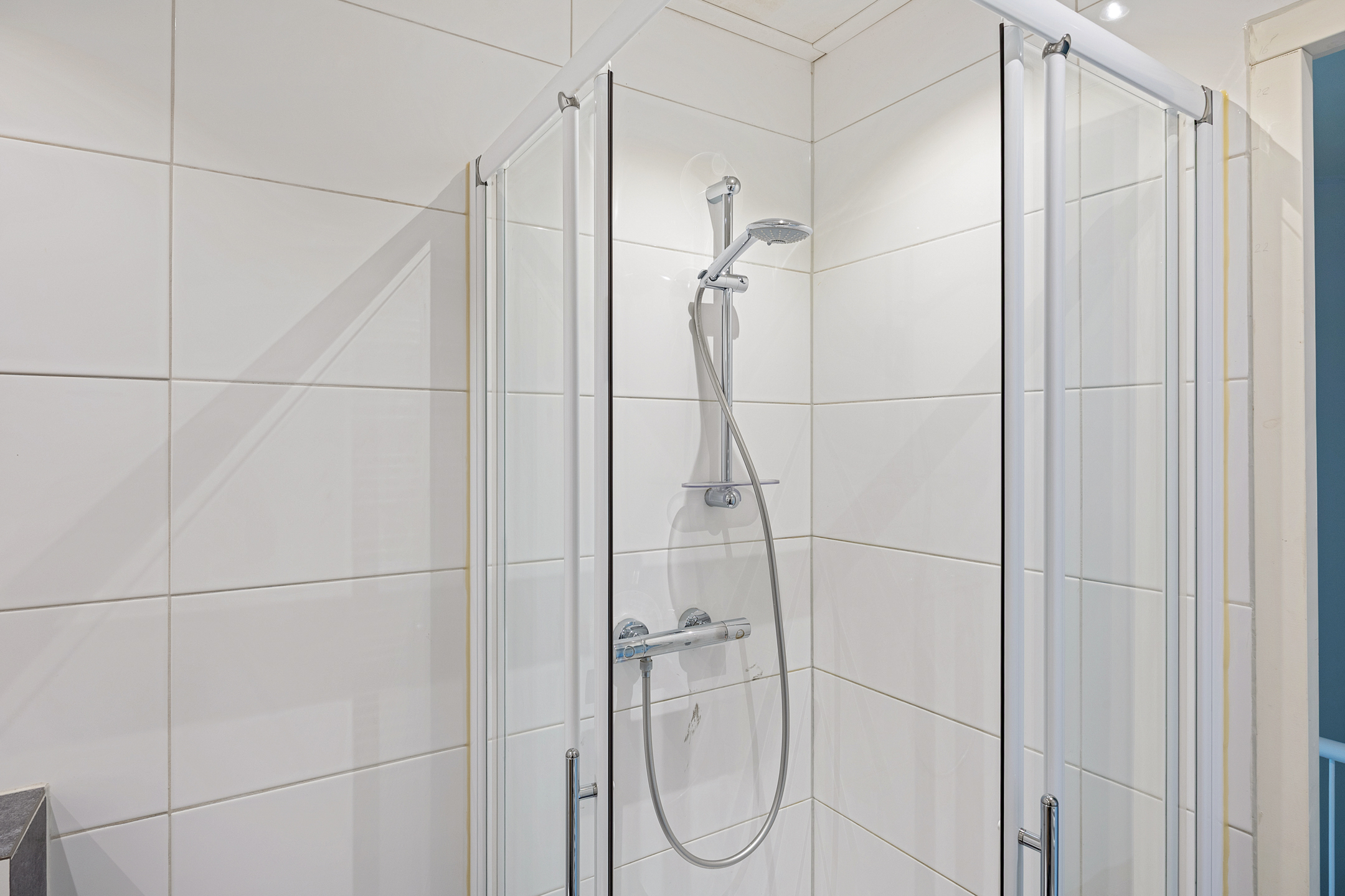 Op de verdieping bevinden zich drie slaapkamers en de badkamer. De grootste slaapkamer ligt aan de zuidzijde en beschikt over toegang tot het balkon. Aan de noordzijde bevinden zich twee slaapkamers, waarvan één bereikbaar is via de andere slaapkamer. Beide kamers bieden toegang tot het balkon op het noorden. De badkamer is voorzien van een douche, wastafelmeubel, wastafel en toilet.
