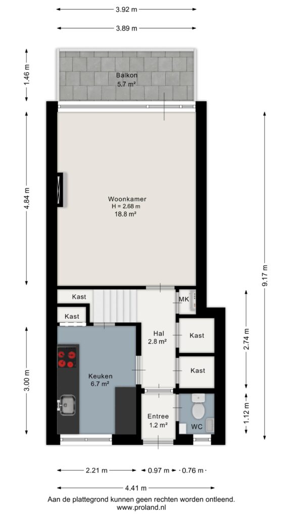 De woning beschikt in totaal over drie balkons met een gezamenlijk oppervlak van ca. 13 m², waardoor je op verschillende momenten van de dag een fijne buitenplek hebt.