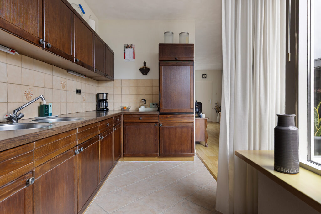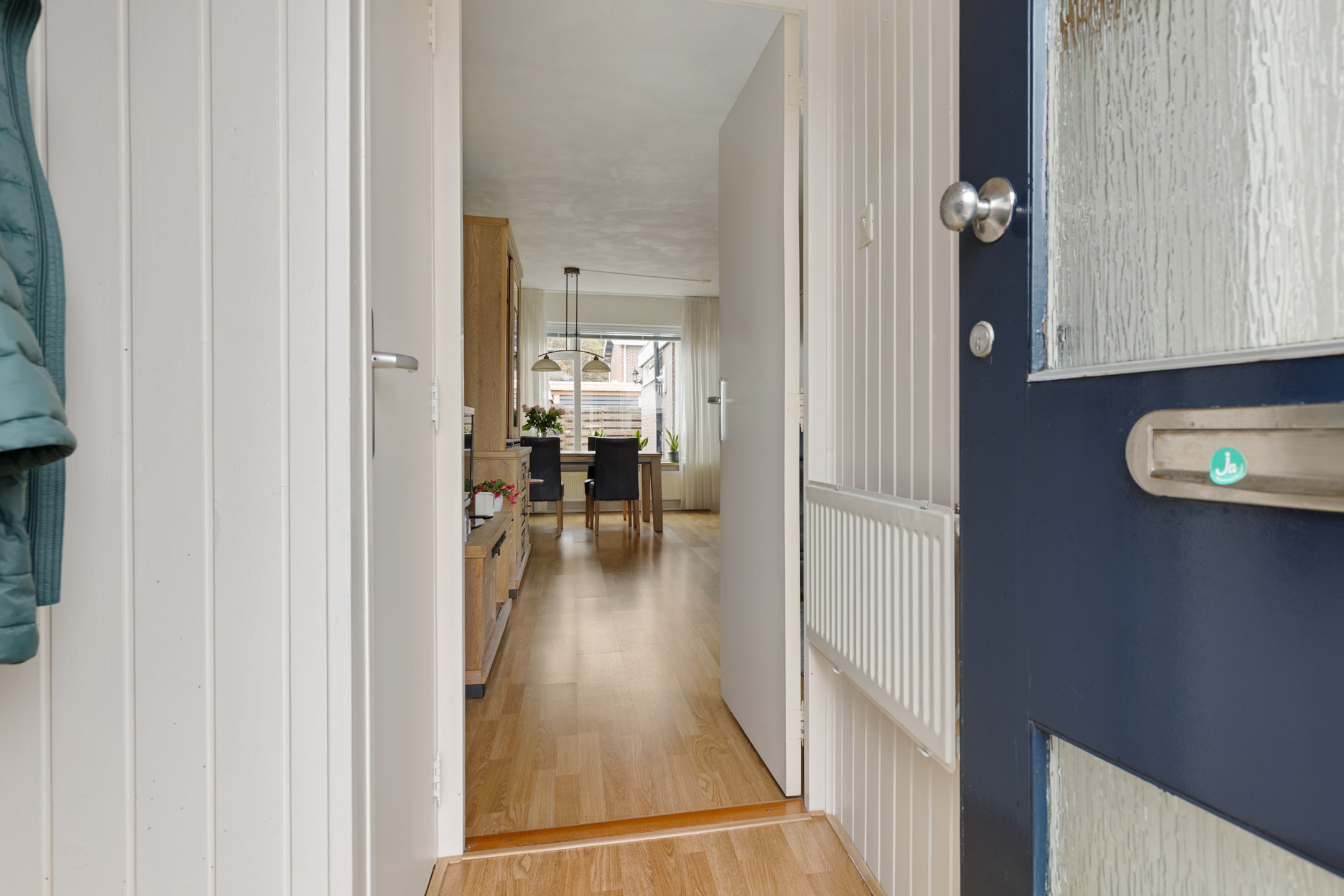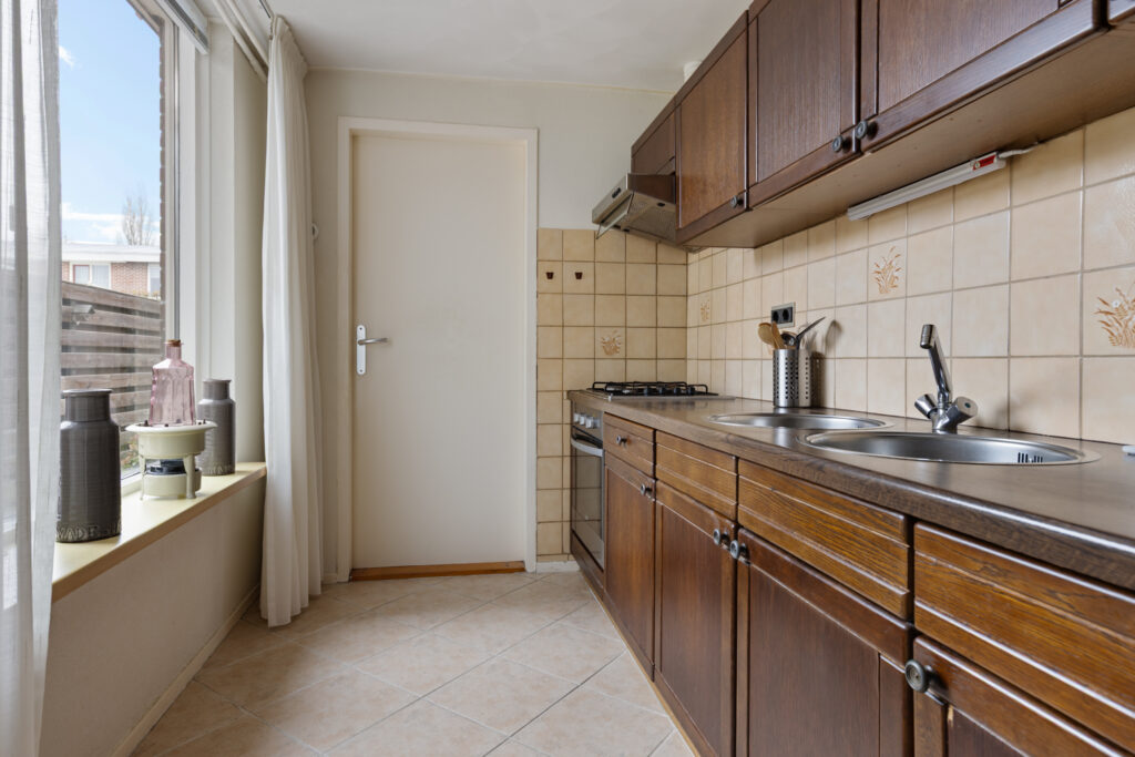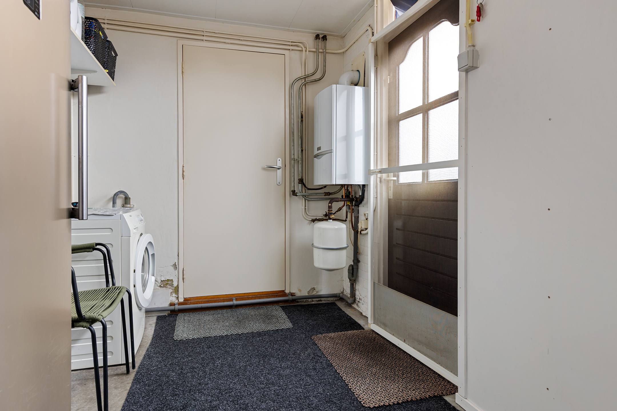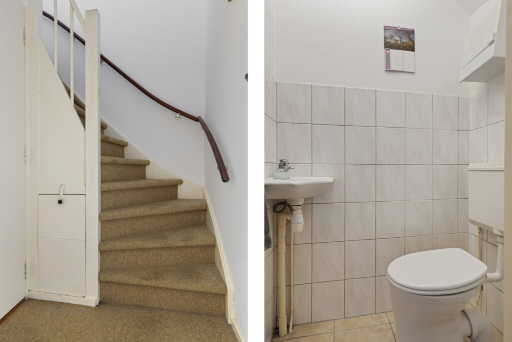 Via de hal met meterkast bereik je de woonkamer. De lichte doorzonkamer heeft grote raampartijen aan zowel de voor- als achterzijde, waardoor de ruimte de hele dag door prettig verlicht is. De open keuken ligt aan de achterzijde en biedt toegang tot de bijkeuken, waar onder andere de wasmachineaansluiting aanwezig is. Vanuit de bijkeuken loop je direct de achtertuin in. In de gang met toilet en kast, welke bereikbaar is vanuit de woonkamer, bevindt zich de trapopgang naar de eerste verdieping.