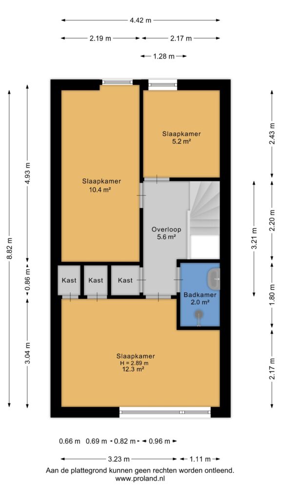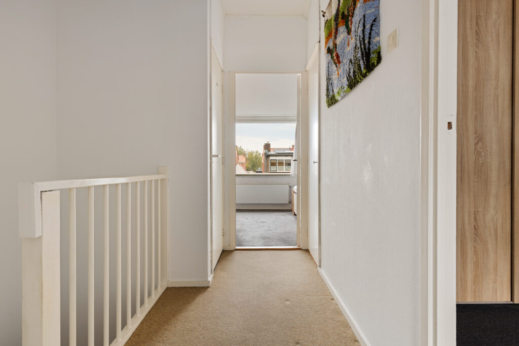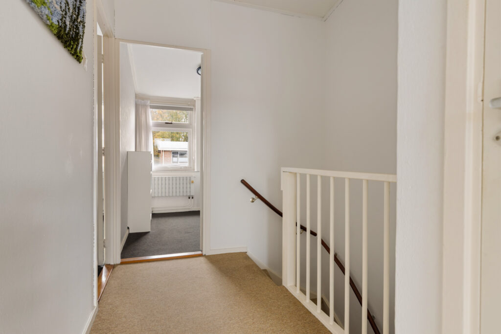 Op de verdieping bevinden zich drie slaapkamers, allen met een praktische indeling. De badkamer is voorzien van een douche en wastafel. De overloop biedt toegang tot alle vertrekken.