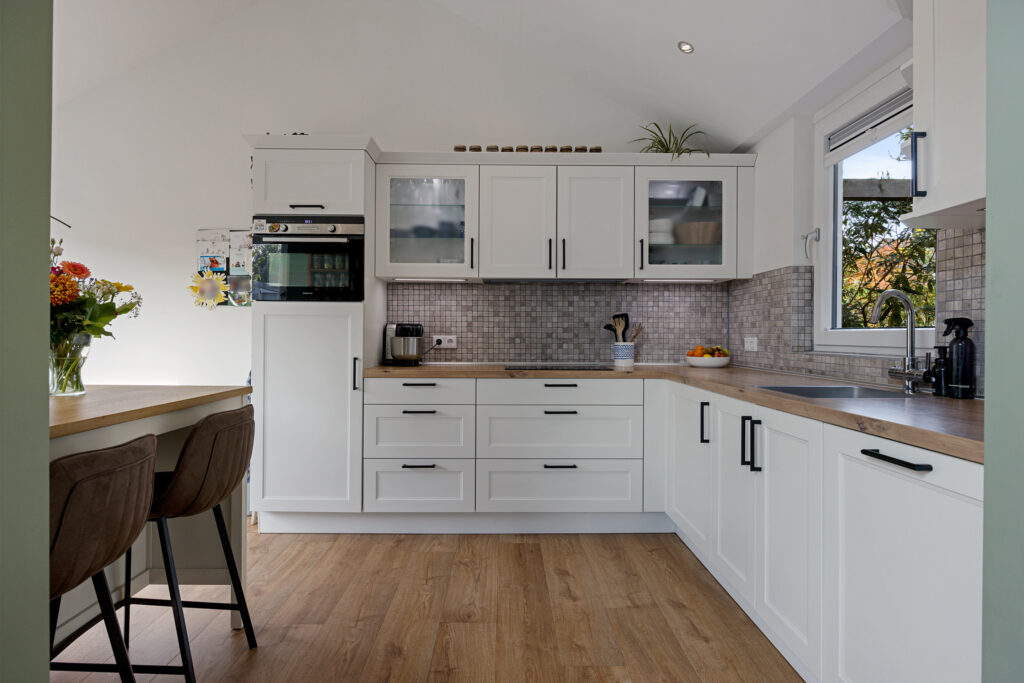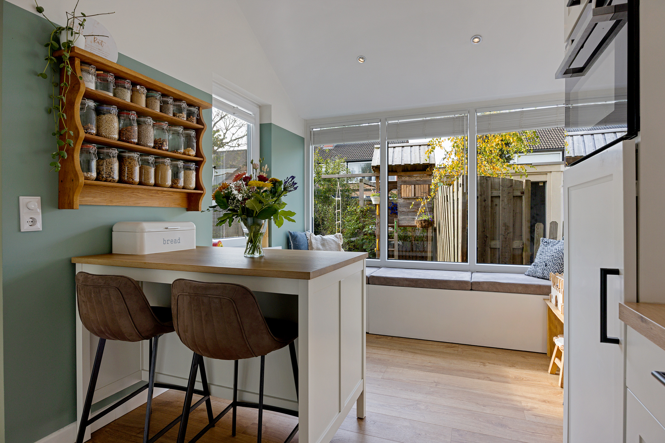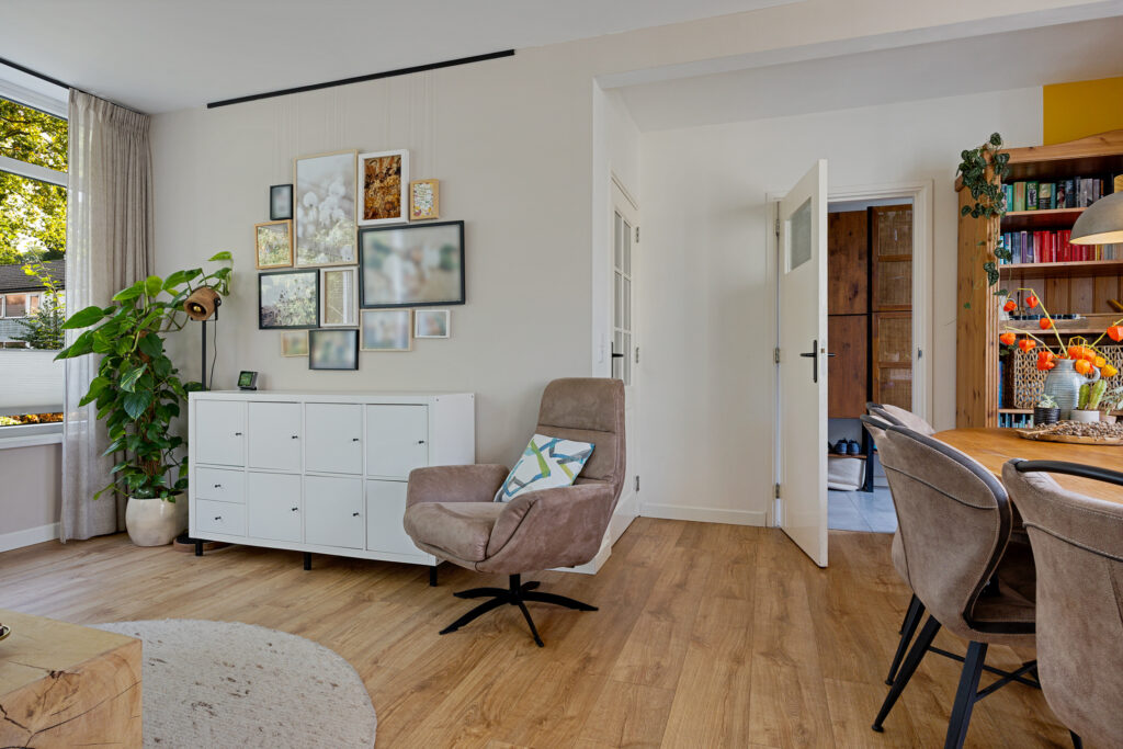 Met name de indeling op de begane grond valt direct op. In 2020 is de gehele benedenverdieping grondig verbouwd waarbij de huidige woonkeuken is gerealiseerd op de plek waar oorspronkelijk een slaapkamer en badkamer waren gesitueerd. De woonkamer zelf beschikt over een keurige PVC vloer en schuifpui naar de achtertuin. Verder uiteraard een entree met modern toilet, trapkast, -opgang naar de eerste verdieping en een functionele bijkeuken. De eerste verdieping onderging in 2019 een vernieuwing en biedt drie keurige slaapkamers met laminaatvloeren. Daarnaast de moderne badkamer met dito ligbad, inloopdouche, wastafelmeubel en wandcloset. Een vlizotrap leidt tot slot naar de bevloerde vliering op de tweede verdieping.